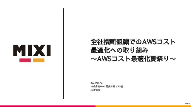 ©MIXI 全社横断組織でのAWSコスト 最適化への取り組み 〜AWSコスト最適化夏祭り〜 2023/06/07 株式会社MIXI 開発本部 CTO室 小池知裕