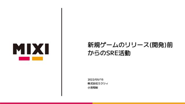 新規ゲームのリリース(開発)前 からのSRE活動 2022/05/15 株式会社ミクシィ 小池知裕