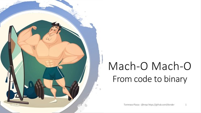 MH_CIGAM_64 • 0xfeedface , 0xcefaedfe, 0xfeedfacf , 0xcffaedfe • Indicator of Endianness and 32 of 64 bit Arch • CPU Type file:///Library/Developer/CommandLineTools/SDKs/MacOSX.sdk/usr/include/mach/machine.h • FileType • MH_EXECUTE, MH_DYLIB, MH_DSYM, MH_OBJECT … • Read with otool –h (or objdump -macho -private-header) Tom m aso Piazza - @ tm pz https://github.com /blender 03.6.19 17