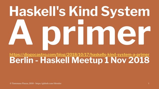 A primer on Type Level programming. My Presentation of the excellent article at https://diogocastro.com/blog/2018/10/17/haskells-kind-system-a-primer/