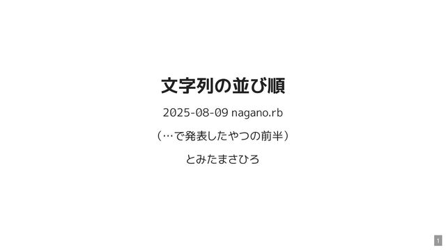 文字列の並び順 2025-08-09 nagano.rb (…で発表したやつの前半) とみたまさひろ 1