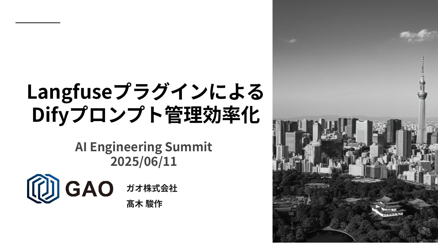 ガオ株式会社 髙⽊ 駿作 Langfuseプラグインによる Difyプロンプト管理効率化 AI Engineering Summit 2025/06/11