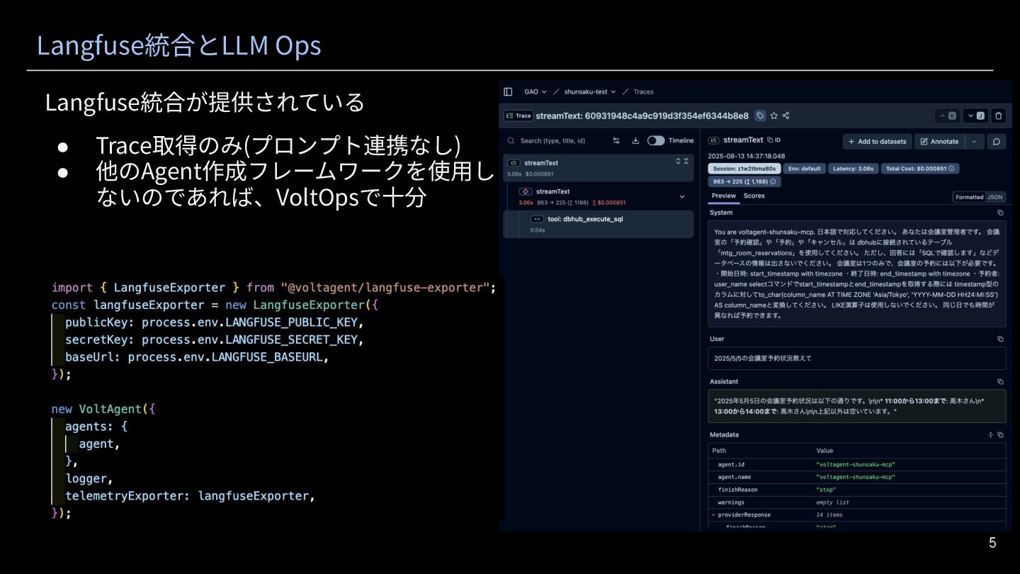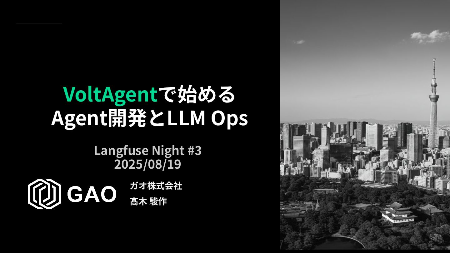 ガオ株式会社 髙⽊ 駿作 VoltAgentで始める Agent開発とLLM Ops Langfuse Night #3 2025/08/19