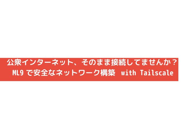 公衆インターネット、そのまま接続してませんか?ML9で安全なネットワーク構築 with Tailscale
