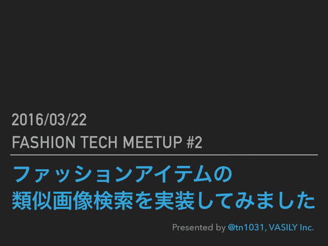 ϑΝογϣϯΞΠςϜͷ ྨࣅը૾ݕࡧΛ࣮ͯ͠Έ·ͨ͠ 2016/03/22 FASHION TECH MEETUP #2 Presented by @tn1031,