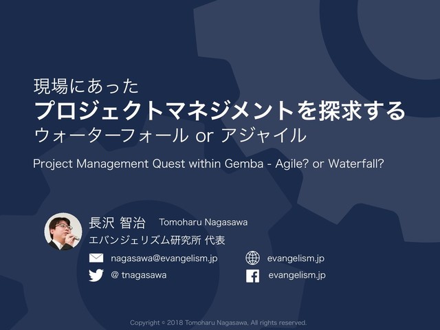 $PQZSJHIU5PNPIBSV/BHBTBXB "MMSJHIUTSFTFSWFE ݱʹ͋ͬͨ ϓϩδΣΫτϚωδϝϯτΛ୳ٻ͢Δ ΥʔλʔϑΥʔϧPSΞδϟΠϧ 1SPKFDU.BOBHFNFOU2VFTUXJUIJO(FNCB"HJMF PS8BUFSGBMM ஐ࣏ 5PNPIBSV/BHBTBXB ΤόϯδΣϦζϜݚڀॴද