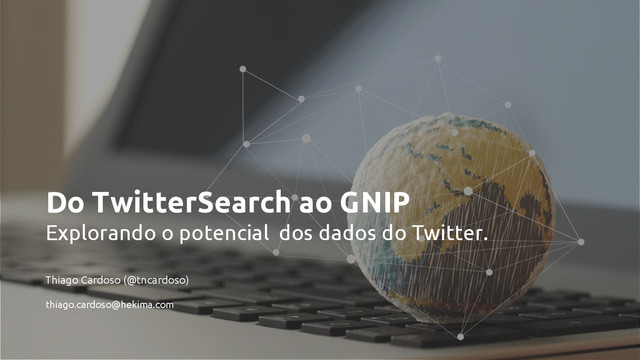 O Twitter é um grande repositório de conteúdo sobre os mais diferentes tópicos. Sua postura aberta em relação aos dados dá voz às pessoas e espaço para as mais diversas aplicações. Antes de criar uma solução com os dados do Twitter, é importante entender as diferentes APIs e seus casos de uso. Esta apresentação abordará conceitos e aplicações das APIs de coleta e também como estruturar sua solução, da infraestrutura mínima à mais robusta.