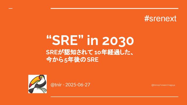 “SRE” in 2030 SREが認知されて 10年経過した、 今から5年後のSRE @tnir - 2025-06-27 @MoneyForward