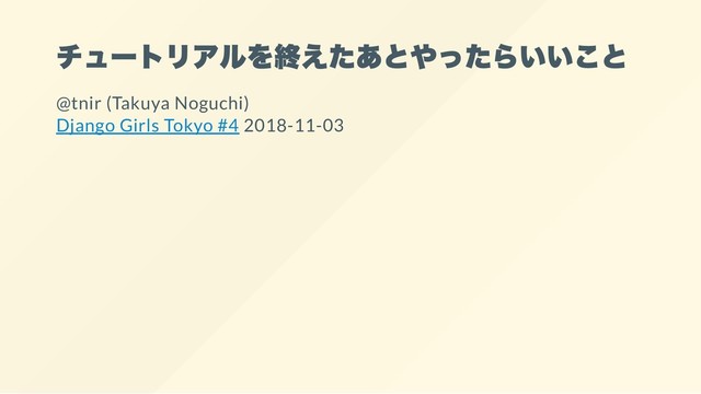 チュートリアルを終えたあとやったらいいこと @tnir (Takuya Noguchi) Django Girls Tokyo #4 2018-11-03
