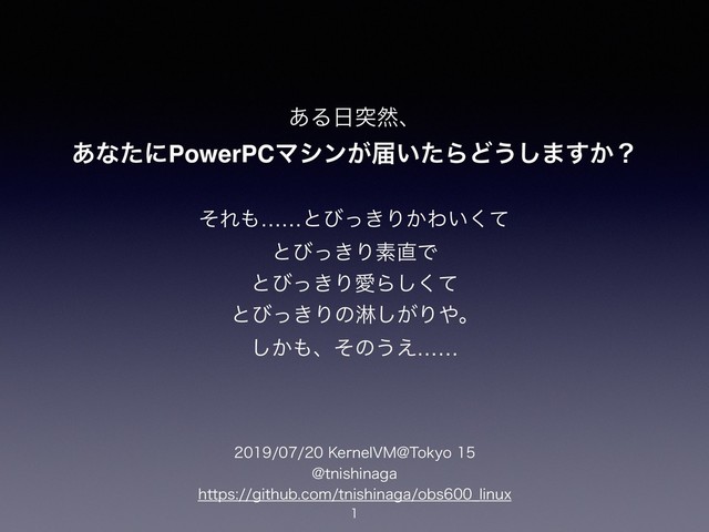 ͋Δಥવɺ ͋ͳͨʹPowerPCϚγϯ͕ಧ͍ͨΒͲ͏͠·͔͢ʁ ͦΕ……ͱͼ͖ͬΓ͔Θ͍ͯ͘ ͱͼ͖ͬΓૉͰ ͱͼ͖ͬΓѪΒͯ͘͠ ͱͼ͖ͬΓͷྜ͕͠Γɻ ͔͠ɺͦͷ͏͑…… ,FSOFM7.!5PLZP !UOJTIJOBHB IUUQTHJUIVCDPNUOJTIJOBHBPCT@MJOVY