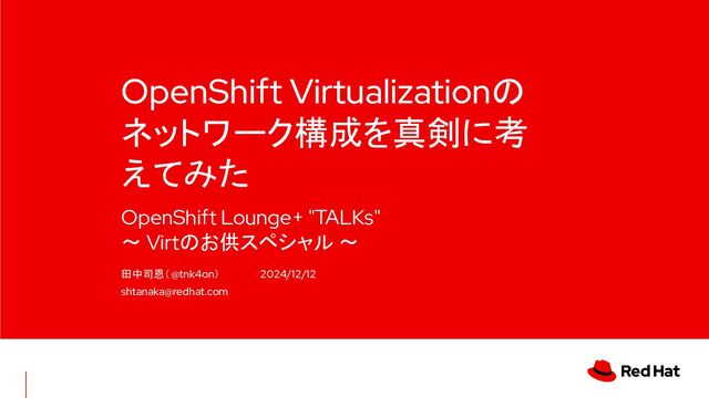 2024年12月12日に開催されたOpenShift Lounge+ "TALKs" 〜 Virtのお供スペシャル〜で発表した資料です。