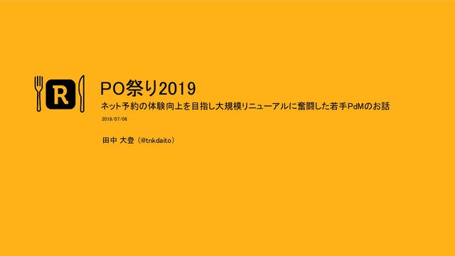 2019/07/06に行われたPO祭りイベントでのショートトーク資料です。PdMとしてネット予約のリニューアルに奮闘した若手PdMの学びと反省のスライド