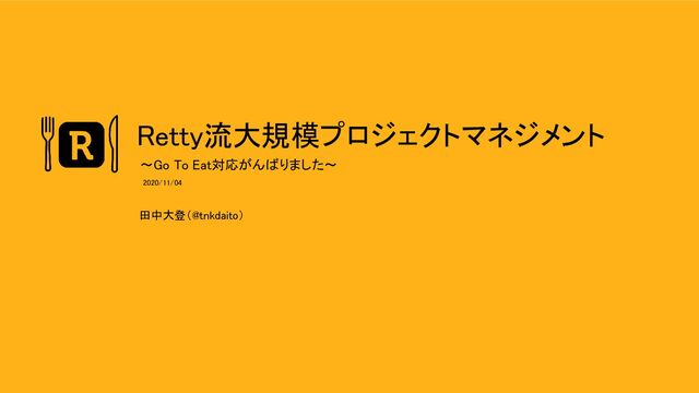 Retty流大規模プロジェクトマネジメント 田中大登(@tnkdaito) 〜Go To Eat対応がんばりました〜 2020/11/04