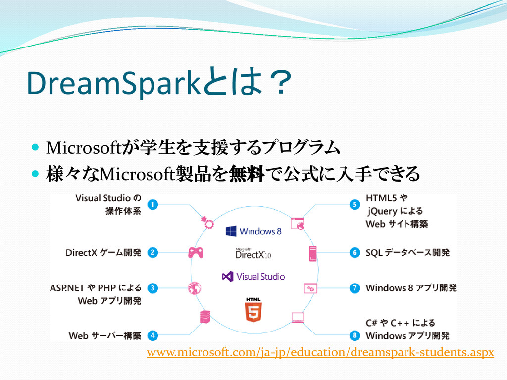 DreamSparkとは? Microsoftが学生を支援するプログラム 様々なMicrosoft製品を無料で公式に入手できる www.microsoft.com/ja-jp/education/dreamspark-students.aspx