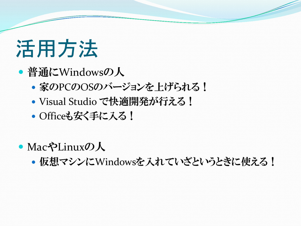 活用方法 普通にWindowsの人 家のPCのOSのバージョンを上げられる! Visual Studio で快適開発が行える!