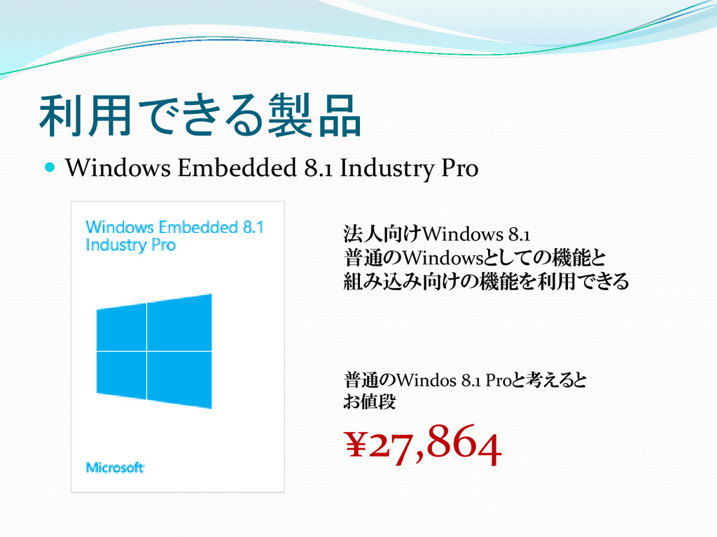 組み込み向けの機能を利用できる 普通のWindos 8.1 Proと考えると お値段 ¥27,864