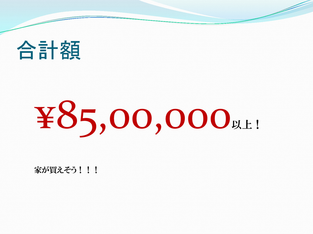 合計額 ¥85,00,000 以上! 家が買えそう!!!