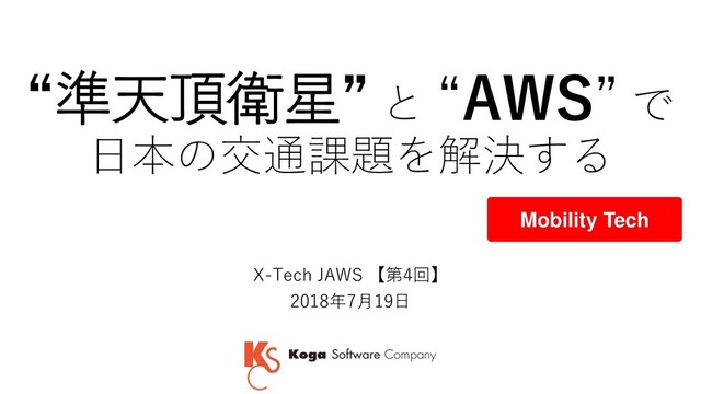 “準天頂衛星” と “AWS” で 日本の交通課題を解決する X-Tech JAWS 【第4回】 2018年7月19日 Mobility