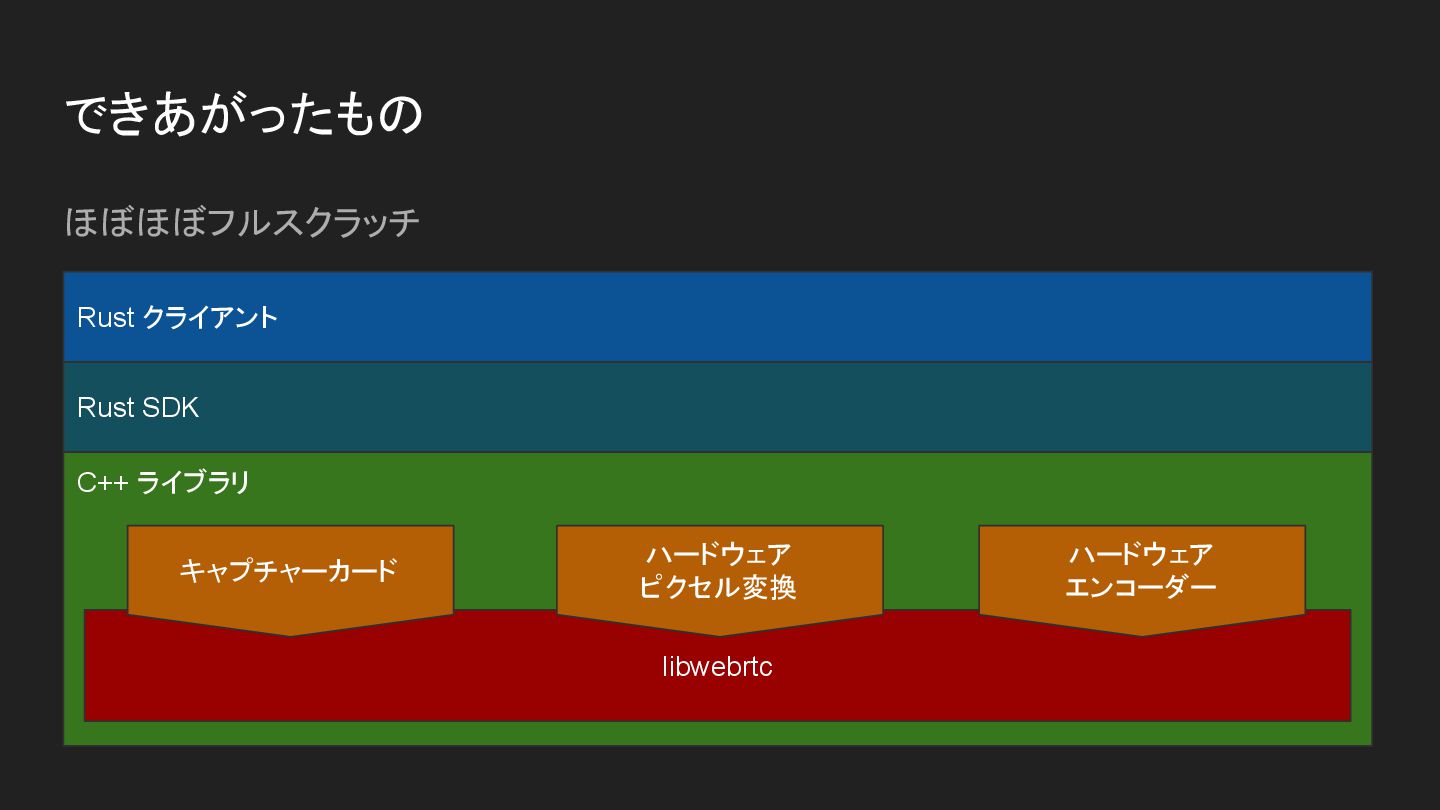 ほぼほぼフルスクラッチ できあがったもの Rust SDK C++ ライブラリ libwebrtc キャプチャーカード ハードウェア ピクセル変換