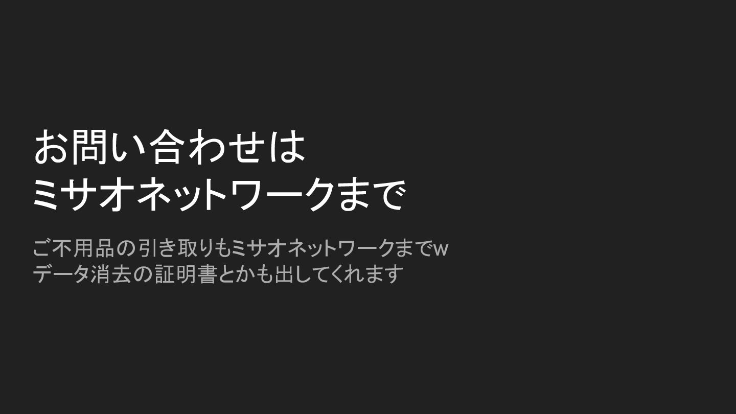 お問い合わせは ミサオネットワークまで ご不用品の引き取りもミサオネットワークまでw データ消去の証明書とかも出してくれます