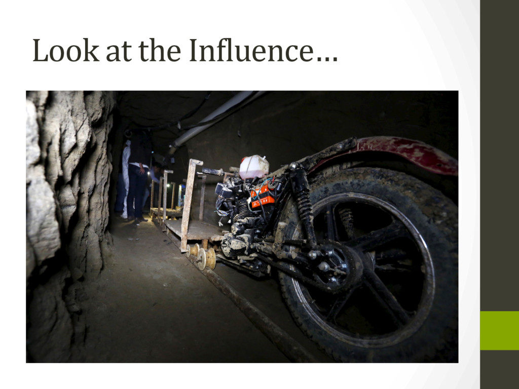 Joaquín Guzmán’s elaborate escape from a Mexican prison • As life evolves, the drug trade conCnues to reap profits and finds new ways to reinvent itself and create a beIer product • All laws have loopholes • Purposely vague legislaCon… judgment vs. biases