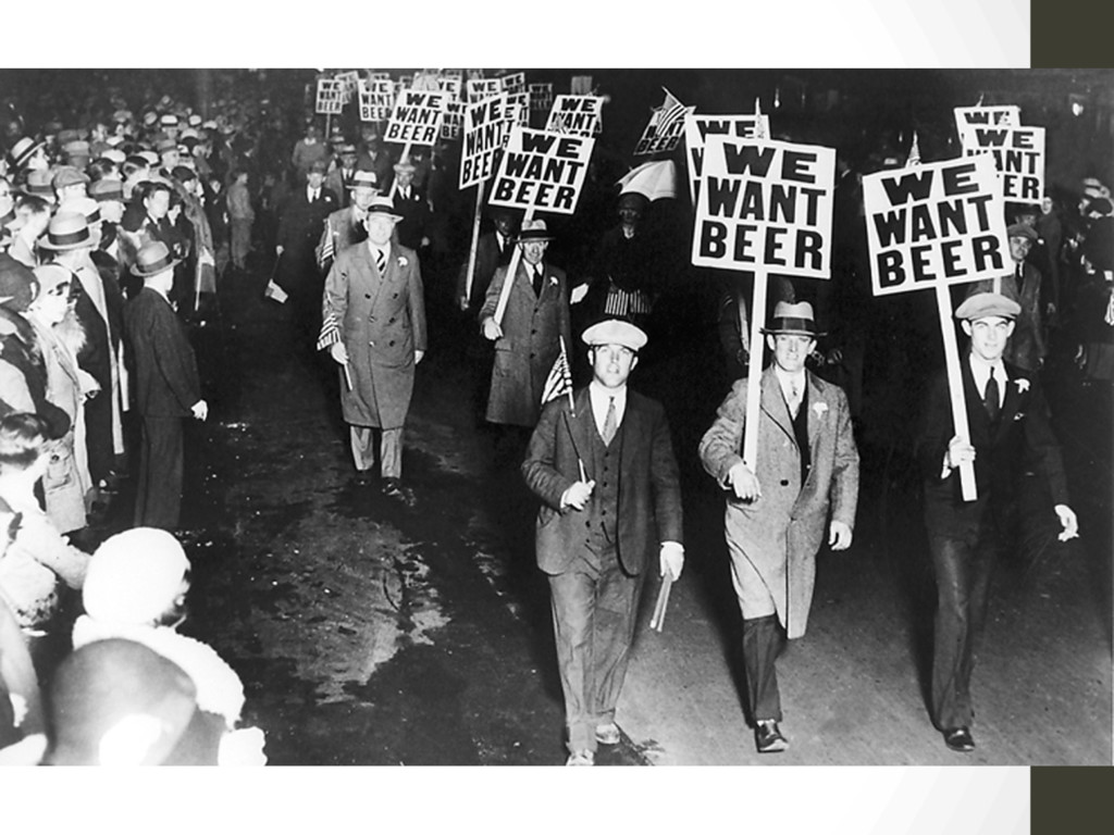the 20th century • Time of prohibiCon of alcohol… we know how this turned out. • 18th amendment: prohibited brewing, purchasing and selling of “intoxicaCng liquors” • Volstead Act (1919) to carry out the 18th amendment; one large loophole in the law • Similar to the idea of prohibiCng drugs of all kinds; an impossible mission
