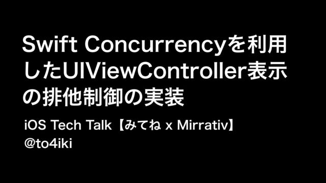 iOS Tech Talk【みてね x Mirrativ】 Swift Concurrencyを利用したUIViewController表示の排他制御の実装 https://mirrativ.connpass.com/event/240385/