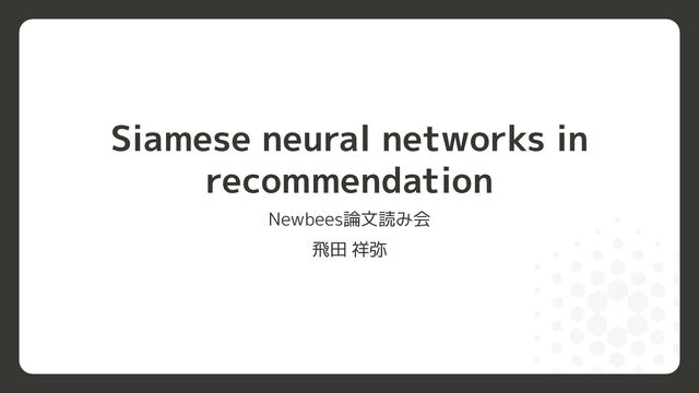 Siamese neural networks in recommendation Newbees論文読み会 飛田 祥弥