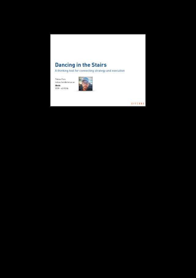 Tobias Fors is a partner at consulting company Citerus since the year 2000. He has the completely made up title "full stack management consultant" and spends his days teaching and consulting with Swedish software developing organizations.
