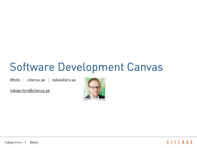 Tobias Fors | @tofo Software Development Canvas @tofo | citerus.se