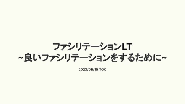 ファシリテーションLT ~良いファシリテーションをするために~ 2023/09/15 TOC