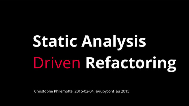 First, we'll quickly introduce static analysis, its benefits and complimentarity with other practices. We'll present each tools, how to understand them, and how they can drive the refactoring on a real big open source project. We'll show how to automate their run and integrate it in your workflow. Finally, if we get the time, we'll do the same on projects of the audience. http://lanyrd.com/2015/rubyconf-au/sdgqxr/