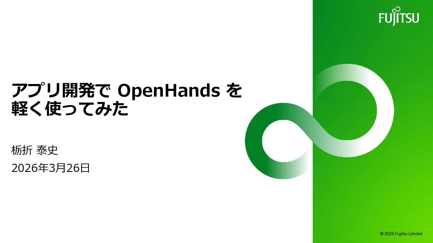 アプリ開発で OpenHands を 軽く使ってみた 栃折 泰史 2026年3月26日 © 2026 Fujitsu