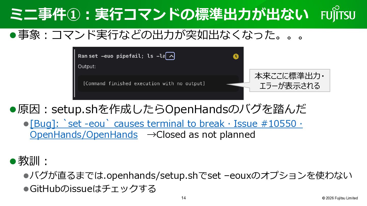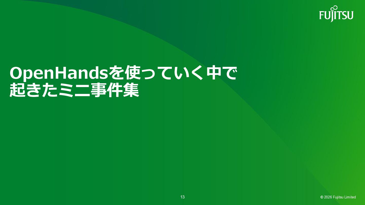 OpenHandsを使っていく中で 起きたミニ事件集 © 2026 Fujitsu Limited 13