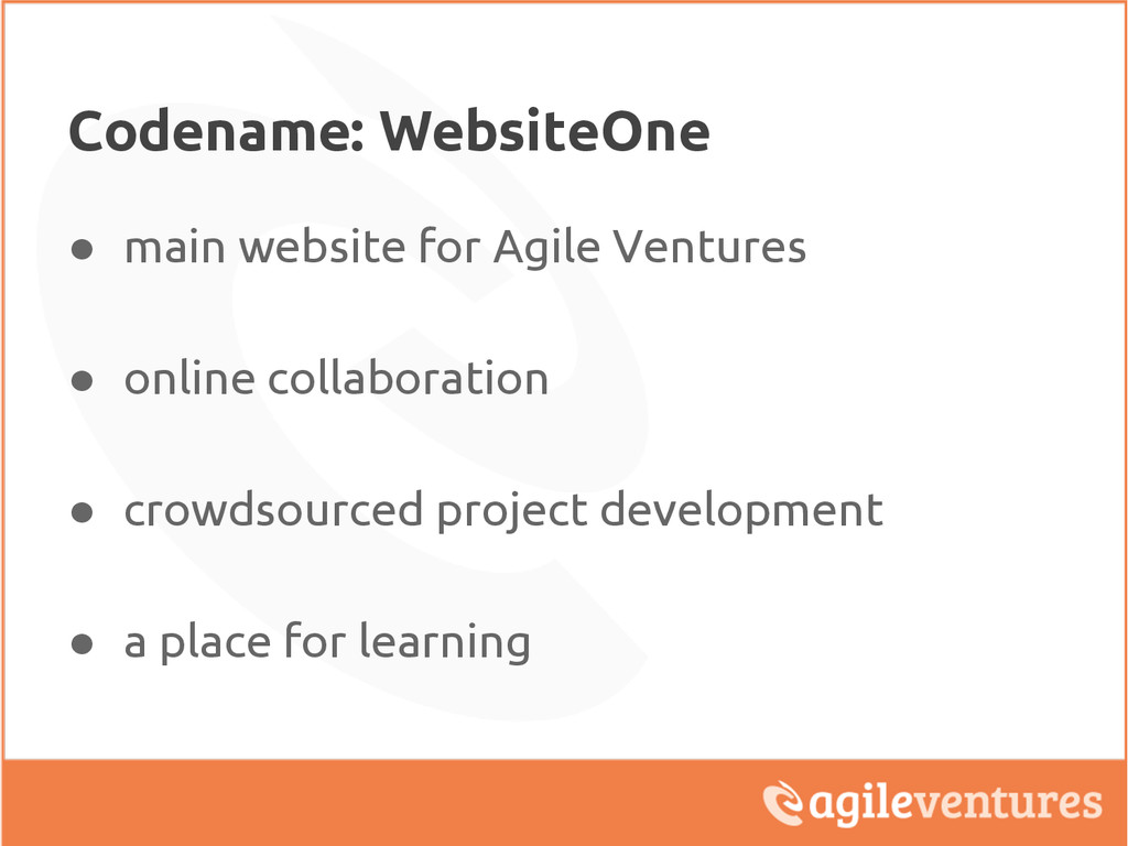 WebsiteOne is the app behind agileventures.org. A website for Agile Ventures - a platform for online collaboration and crowdsourced project development.