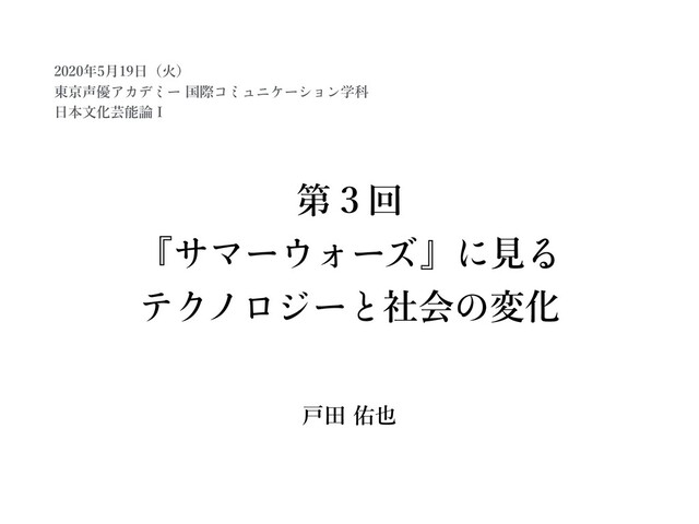 日本文化芸能論Ⅰ 第3回 『サマーウォーズ』に見る テクノロジーと社会の変化