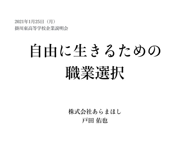 ⾃由 ⽣ 職業選択 株式会社 ⼾⽥ 佑也 2021年1⽉25⽇(⽉) 掛川東⾼等学校企業説明会