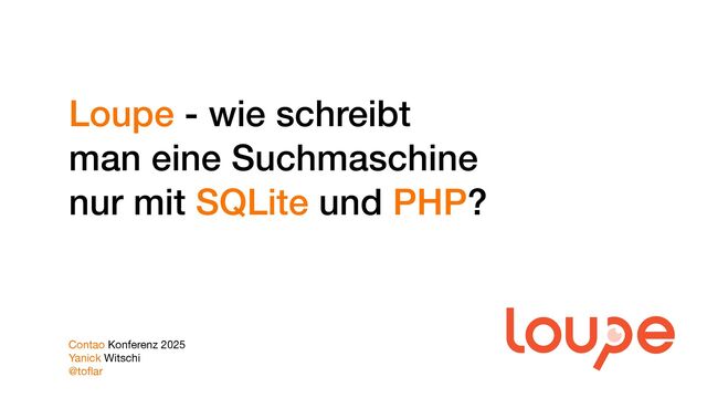 Seit Contao 5.5 haben wir eine Backend-Suche und sie verzeiht standardmässig sogar Tippfehler. Und das ganz ohne eine Suchmaschine wie Elasticsearch oder Meilisearch installieren und konfigurieren zu müssen. Aber wie kann das sein? Wie baut man eine Suchmaschine nur mit SQLite und PHP? Ein Ausflug in die Welt von Loupe.