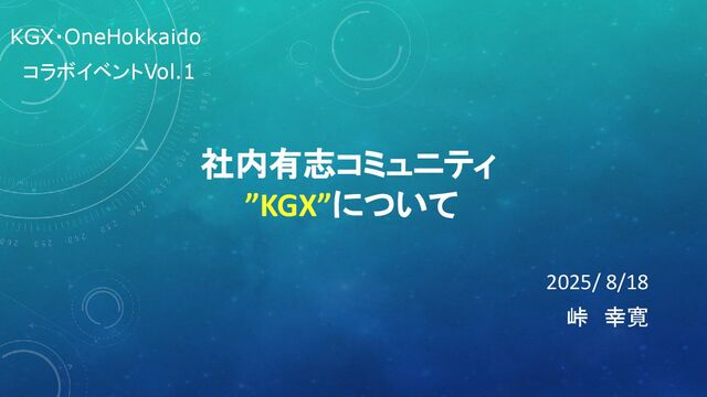社内有志コミュニティ ”KGX”について 2025/ 8/18 峠 幸寛 KGX・OneHokkaido コラボイベントVol.1