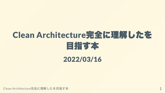 Clean Architecture 完全に理解したを 目指す本 2022/03/16 Clean Architecture 完全に理解したを目指す本 1