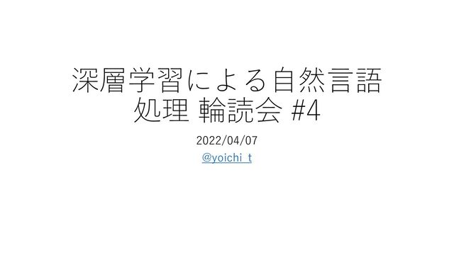 機械学習プロフェッショナルシリーズの「深層学習による自然言語処理」の輪読会の第4回資料。