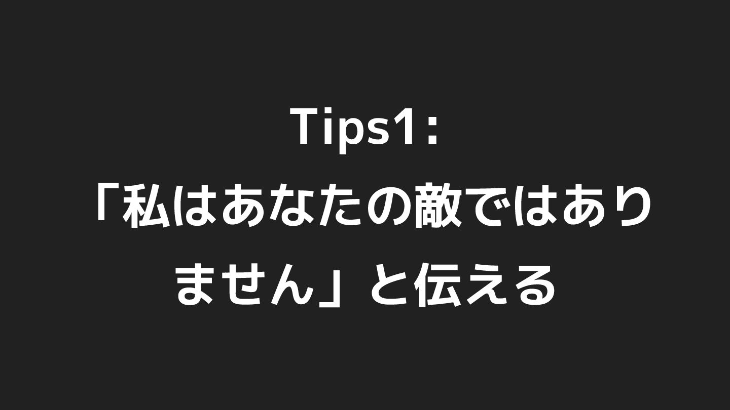 Tips1: 「私はあなたの敵ではあり ません」と伝える