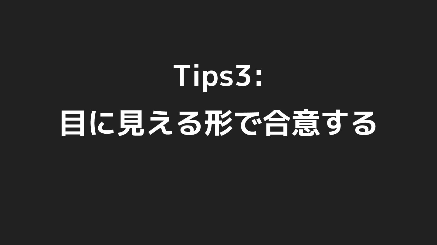 Tips3: 目に見える形で合意する • なぜ? ◦ チームにはプロジェクト以外にも仕事がある ▪ プロジェクト ≠ プロダクト