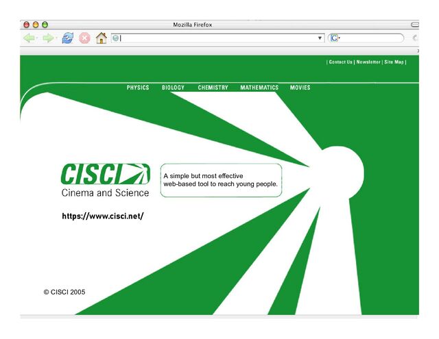 is a combination of two highly involving media: Movies and the Internet. The Goal CISCI raises interest of the young generation in sciences. Strong influence on their attitude towards studying sciences.