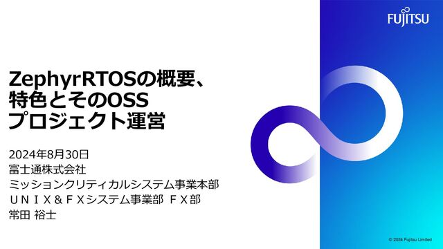 gpio_pin_configure_dt(&led, GPIO_OUTPUT_ACTIVE); if (ret < 0) { return 0; } while (1) { ret = gpio_pin_toggle_dt(&led); if (ret < 0) { return 0; } led_state = !led_state; printf("LED state: %s¥n", led_state ? "ON" : "OFF"); k_msleep(SLEEP_TIME_MS); } return 0; } © 2024 Fujitsu Limited 27