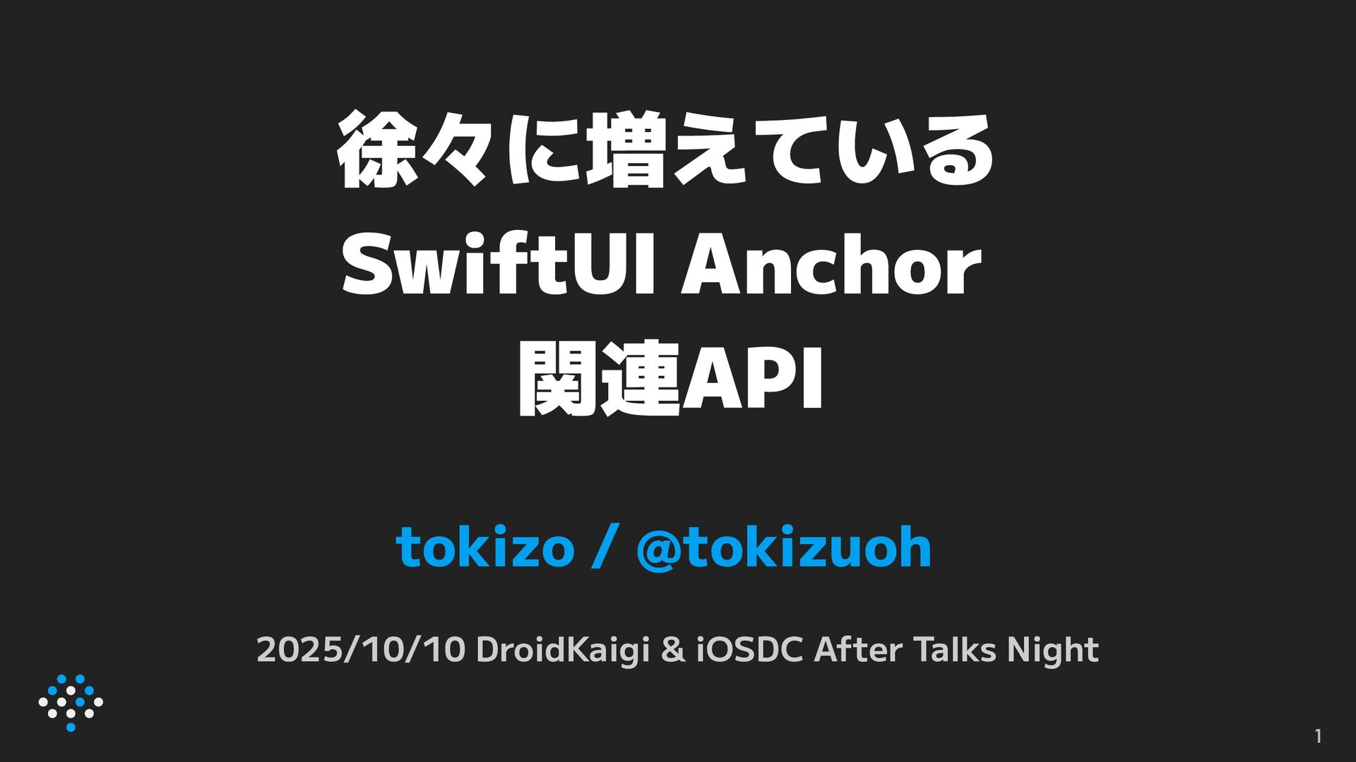 徐々に増えている SwiftUI Anchor 関連API tokizo / @tokizuoh 2025/10/10 DroidKaigi &