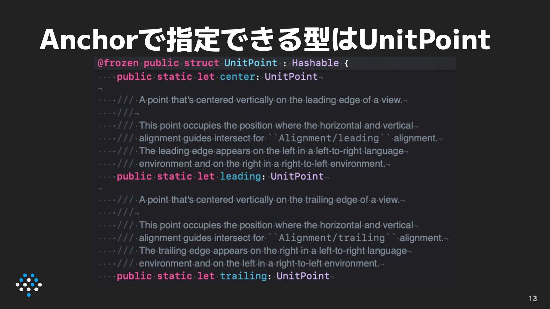 Anchorを受け取るAPIが増えている • AnchorはUnitPointで値を指定することでより細やかに 位置系を制御できる 19