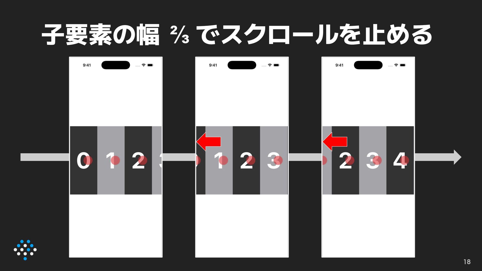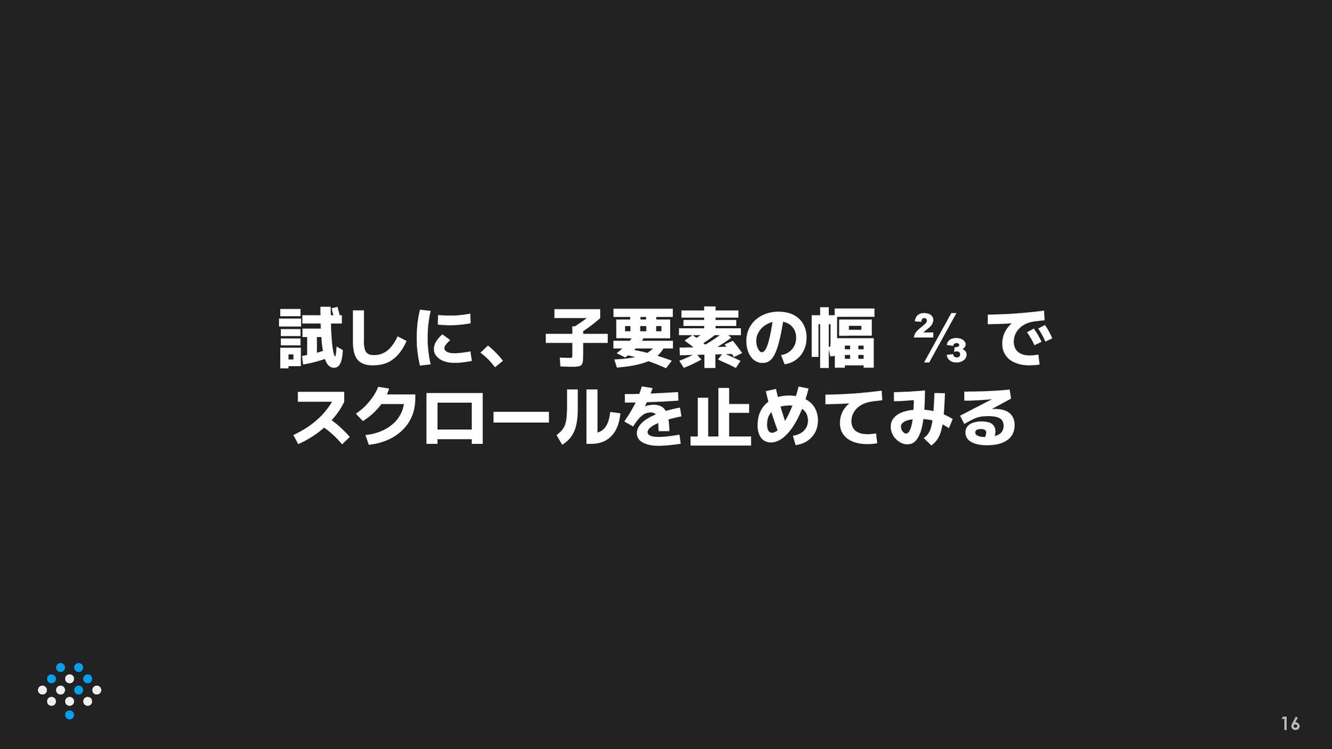 16 試しに、子要素の幅 ⅔ で スクロールを止めてみる