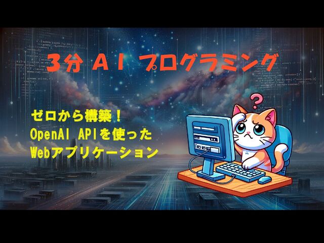 OpenAI APIを使ったWebアプリケーションを3分程度(実際は4分ちょっと)の動画で行う試みです。 動画は下記内容になります。
