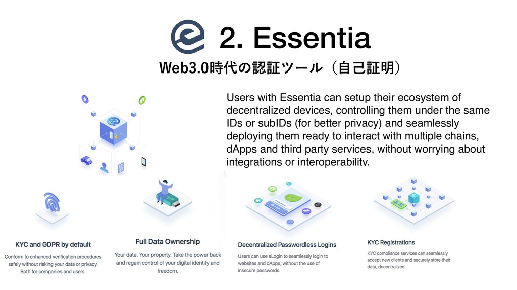 of decentralized devices, controlling them under the same IDs or subIDs (for better privacy) and seamlessly deploying them ready to interact with multiple chains, dApps and third party services, without worrying about integrations or interoperability.